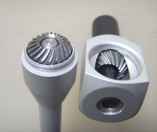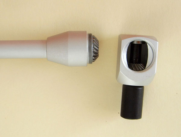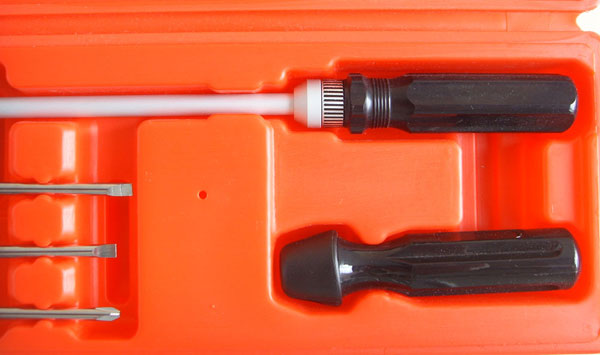 |  Professional 90 degree screwdriver. 480mm long (19inches) approx. Comes in a quality heavy moulded plastic box.  Very short slot bit as standard. Seven alternativelength bits (5 x slot, 2 x star) fit in second bevel drive head.  Side fixing steadying handle fits on the shaft inany place and at any rotated angle as below  Bevel drive and the 2 standard heads. They just screw onto the bevel drive. The slot head needs only 32mm clearance. On the 2nd head the bits are held by the brass knurled attachment.  Second head attached with longer slot bit attached  Optional 3rd bevel head. £12 extra on shopping cart and £9 if bought with Bevel Screwdriver. This is a standard hex bit holder that will hold any bit that fits a power screwdriver, slot, philips, pozi, allen, torx etc.  The £9 optional 3rd bevel head with an allen bit attached.  Detail of bevel drive and head.  | The Bevel 90Carburettor Pilot Adjustment Tool - Makes pilot Adjustment Easy! Bevel 90 is a professional quality tool at asensible price. Perfect for those impossible to reach idle mixture screws and at afractionof the price of OE tools. Features Include: Bevel gearbox drive with zero free play ensuresaccurate adjustment. Standard slot screwdriver for veryinaccessible screws. Only 32mm clearance needed. Seven extra bits (5 x slot, 2 x star) fitin alternative bevel head drive. Different length slot and phillips bits for more or less accessiblepilot screws. Side grip handle fits any position on the shaft and can be rotated toany angle for easy steadying of the screwdriver. £5 optional 3rd hex drive bevel head. Works with standard power screwdriver bits, slot, philips, pozi, allen, torx etc. (On 91-03 Honda 750 Nighhawks there's an oil supply pipe directly underthe head of the #2 pilot screw. This obstructs access to this screw.) £47 for this professional tool. £12 for optional hex drive head. £9 when bought with the bevel screwdriver. |