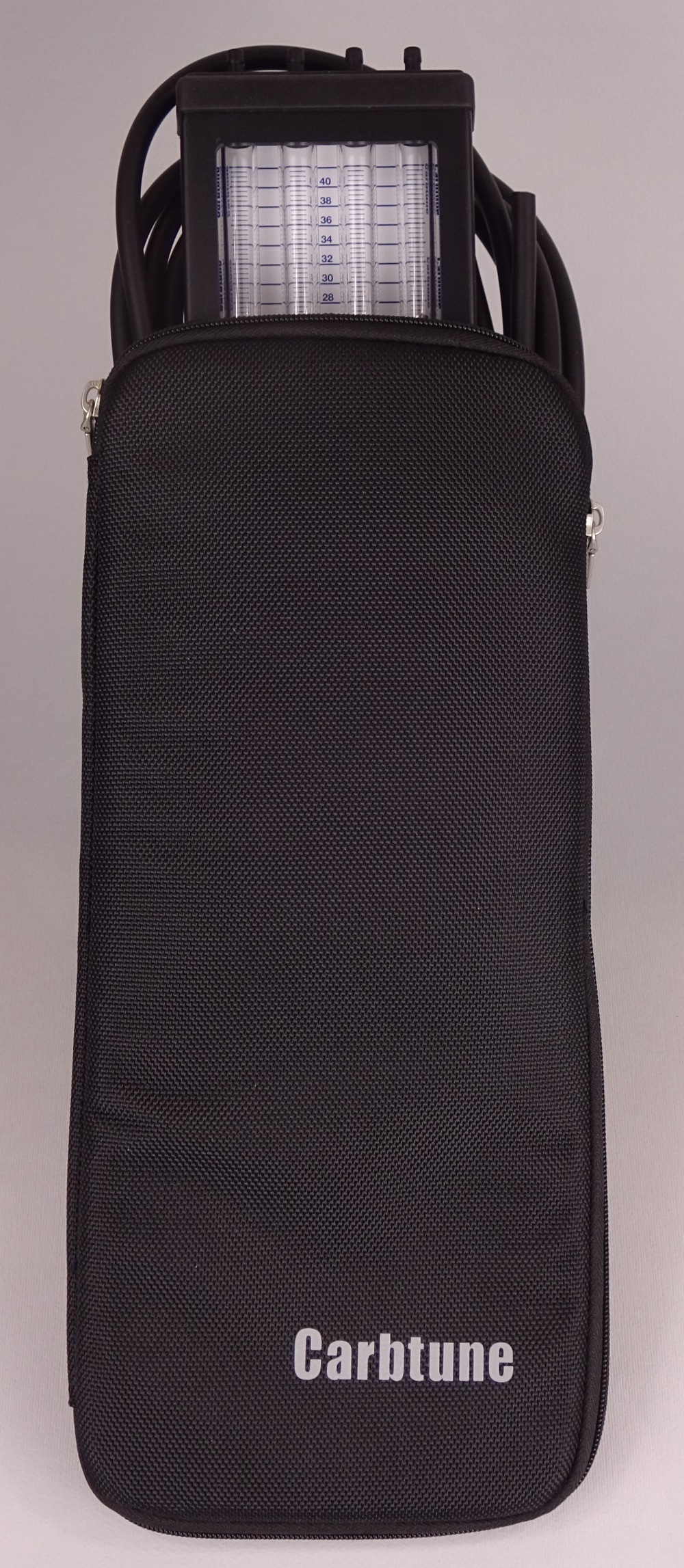 Tool Pouch with Carbtune, hoses, adapters etc packed inside  Quality nylon construction with branded zip pulls  Space inside to store all the parts  Keeps it neat and tidy  Works with old Carbtune II and Carbtune Pro | Fit the Carbtune Pro and accessories inside the padded tool pouch. Protect the instrument and keep all the parts together The purpose built tool pouch is made from black heavyweight nylon. Large zip up compartment to fit Carbtune and accessories. When all the components are packed inside the tool pouch they are well protected. Price £12 for the tool pouch |